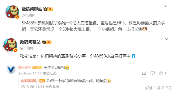 从iQOO系列来说,沉寂多年的小屏手机市场即将迎来一位破局者,博主称iQOO正在秘密开发一款代号SM8850的小屏旗舰。