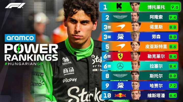匈牙利站官方车手评分: 博托莱托登顶, 阿隆索紧随其后