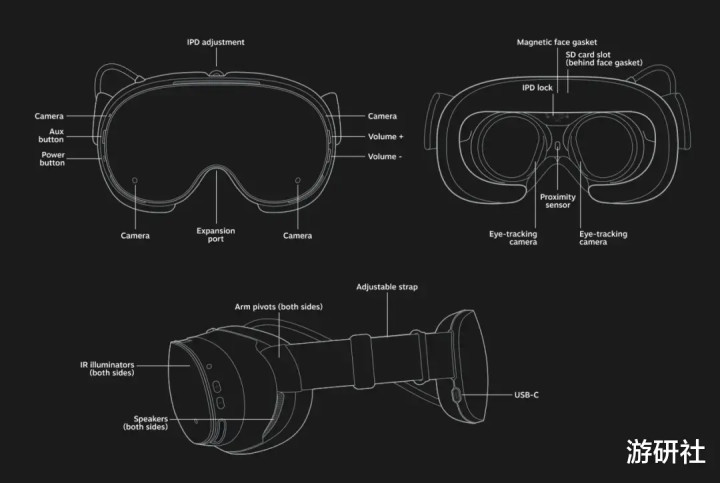 光学特性方面,头显采用定制 pancake 透镜方案,包括 2160 x 2160 LCD 面板,每眼各一,支持 72 - 144Hz 刷新率